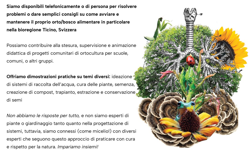 Per coloro che eventualmente vogliono prendersi cura del proprio giardino da soli (o anche con l’aiuto di un giardiniere) condividiamo le nostre conoscenze e il nostro approccio in modo che i nostri clienti prendono il ruolo di “apprendisti” per imparare e adottare questo modo di collaborare con la natura, così che si sentano a proprio agio nel svolgere il lavoro da soli e nel coltivare i propri prodotti senza dover sempre chiedere aiuto a noi.